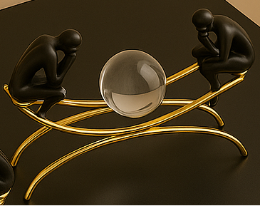 The Crystal Room Resin & Alloy Figurine Set celebrates balance, duality, and modern abstract art. Designed in matte black figurines seated over a curved golden structure, each sculpture features a reflective crystal sphere at the center—symbolizing thought, calmness, and inner power.